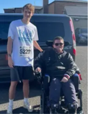 I’ve been living with Duchenne since I was born. My older brother, Noah, was diagnosed at three. Ever since, our family has faced some challenges. Charities like the DFSG have been incredibly helpful in supporting us through these difficulties. Now that my brother and I are older, we feel it’s our turn to give back and help a charity that has always been so kind to us, so they can assist more families like ours. My aim is to run all the major marathons for the charity, and this is the first step.